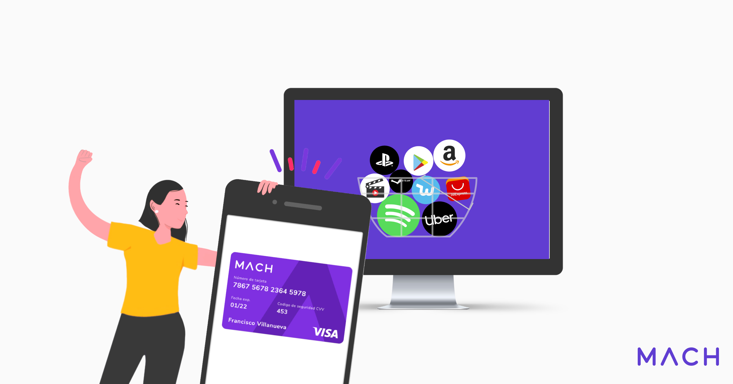Tu tarjeta Visa MACH es libre de comisiones, así que puedes comprar en los comercios online que quieras sin tener que pagar un extra.